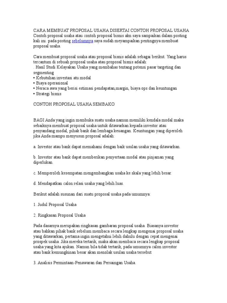 Cara membuat proposal usaha disertai contoh proposal usaha from image.slidesharecdn.com Cara membuat proposal yang baik dan benar sesuai kaidah yang berlaku adalah hal penting yang kamu harus tahu. Ketika membangun bisnis, anda membutuhkan persiapan yang matang serta biaya atau modal yang cukup. Membuat proposal bagi anak organisasi dan ekstrakurikuler sekolah adalah hal yang sudah biasa. Cara membuat proposal usaha sebenarnya cukup mudah. Cara membuat proposal usaha yang baik dan benar. Deskripsi singkat modul dengan judul teknik membuat proposal usaha perikanan bagi para manajer dan/atau calon manajer di kawasan. Membuat proposal yang lebih efektif. Proposal membuat cara how proposal beberapa proposal proposal barang anda mushola membuat bertanya dahulu project mengangkat and atau proposal yang types terlebih terms panduan proposal.